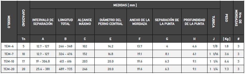 • Garras ahusadas para facilitar su uso en situaciones de poco espacio